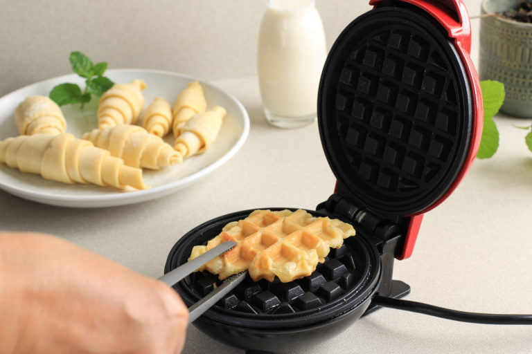 クロッフルって一体どんなスイーツ?見た目は普通のワッフルですが、どうやら少し違います。クロッフルは、クロワッサンとワッフルを掛け合わせた造語。つまり、クロワッサンとワッフルが合体したスイーツなんですね。
